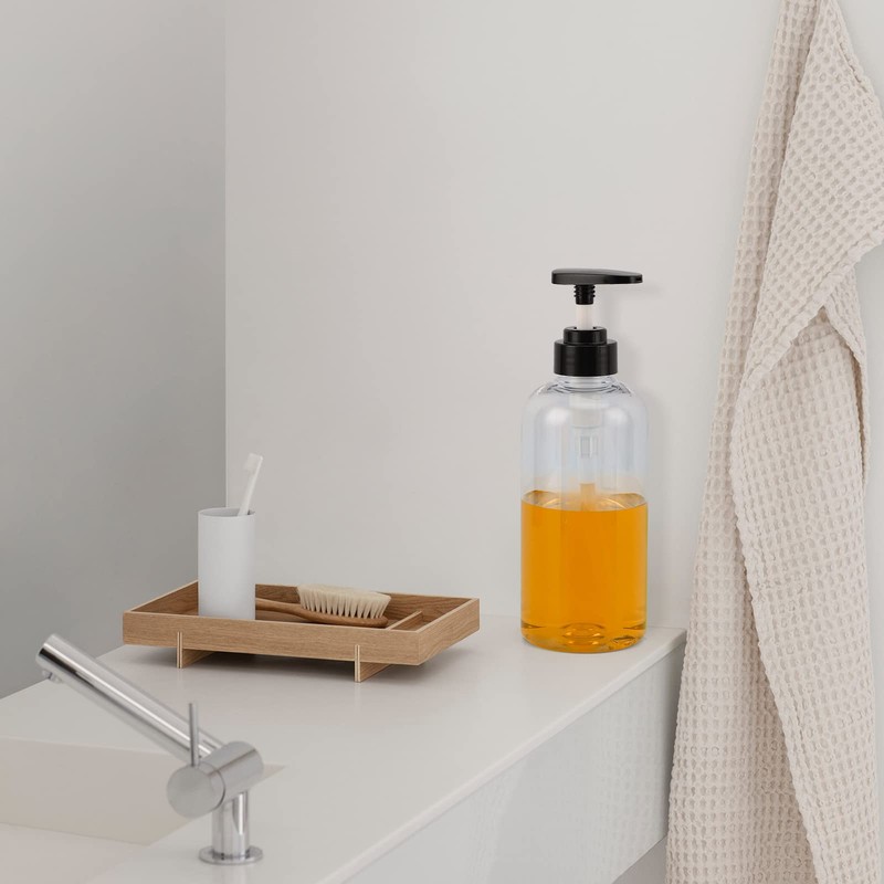 - Pretty and functional: the elegant look of the soap dispenser makes your bathroom tidy. Each dispenser bottle has a capacity of 500 ml and the 6 labels can be replaced as desired.