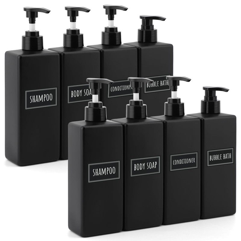 Segbeauty Soap Dispenser Set, 8 Pieces 500 ml Shower Gel Dispenser, Shampoo Dispenser Plastic, Dispenser Bottle with Waterproof Labels, Shower Gel Dispenser for Shower (Matte Black)