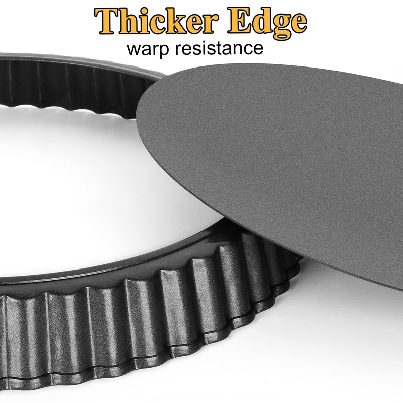 • Edge Enhance Fit High & Low Temperature -- 100% carbon steel made, high hardness, not easy to deform/warp, Round quiche pan is suitable for both the refrigerator and the oven, Minimum temperature -104℉(-40℃), maximum temperature 445℉ (230℃), heated by evenly frozen
