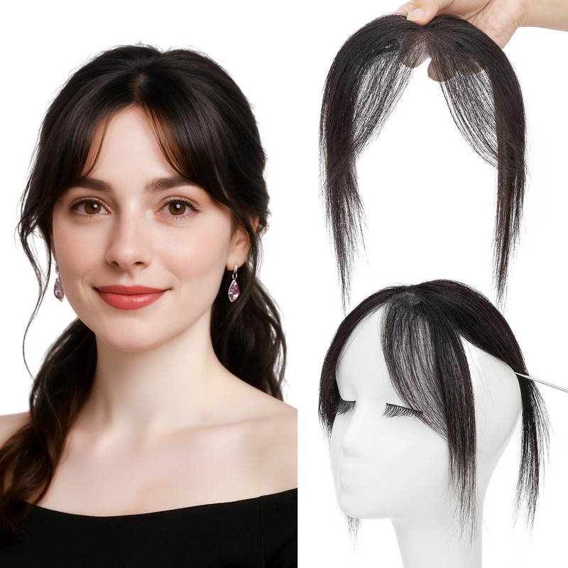 - ♛Natural Wispy Bangs♛ A quick solution to change your hairstyle without cutting, receding hairline, big forehead, etc. Made from real human hair, it provides a soft-feeling, bouncy, and lightweight texture that causes no harm.