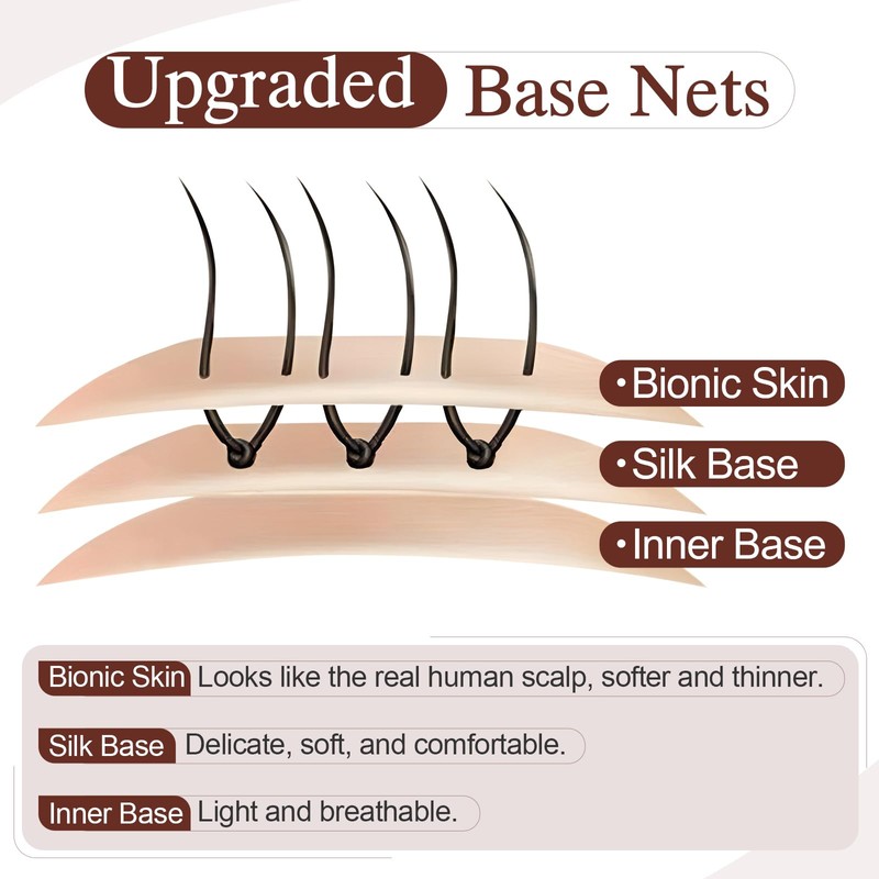 - 【Three-Layered Base】 SEGO hair topper features a Skin Top Base, a Silk Base, and a Skin-Friendly Inner Base, providing comfortable wear and a secure fit.