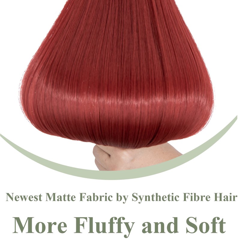 - Material: 100% synthetic Japanese heat-resistant synthetic fibre, washable and styled (temperatures of up to 130 °C); similar to real hair, more natural; with a matte look, it looks like real hair.