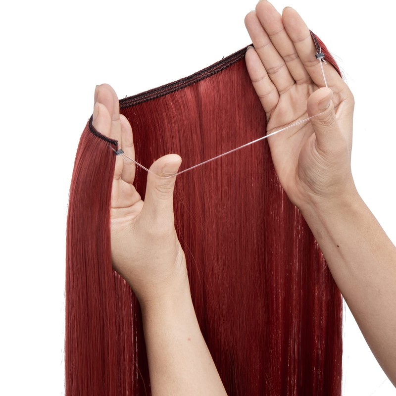 SEGO Secret Hair Extensions, 1 Weft Hair Extensions, Synthetic Hairpiece with Invisible Wire, Invisible Straight, 20 Inches-90 g, Dark Red, 50 cm