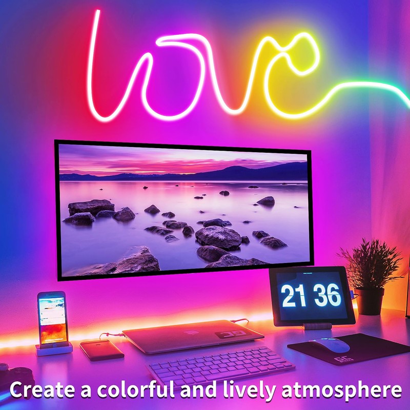 - Flexible and Waterproof: Compared with ordinary LED strips, this neon LED strip is more flexible, 360° bend at will, you can easily bend it into the shape you want. It can easily decorate the bedroom,room, kitchen. IP65 waterproof, suitable for indoor and outdoor use.