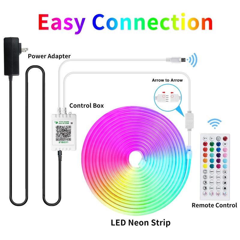 - LED Neon Light Bar Set: 1), 1*50ft LED Neon strip Lights 2, 1*24V1A Power Supply, 45* Snap *45 Screws, 1* Controller, 1* Remote Control ,Attention: The controller power supply is not waterproof2) Different from traditional LED light bar, this one No self adhesive tape on the back of the neon rope strip!
