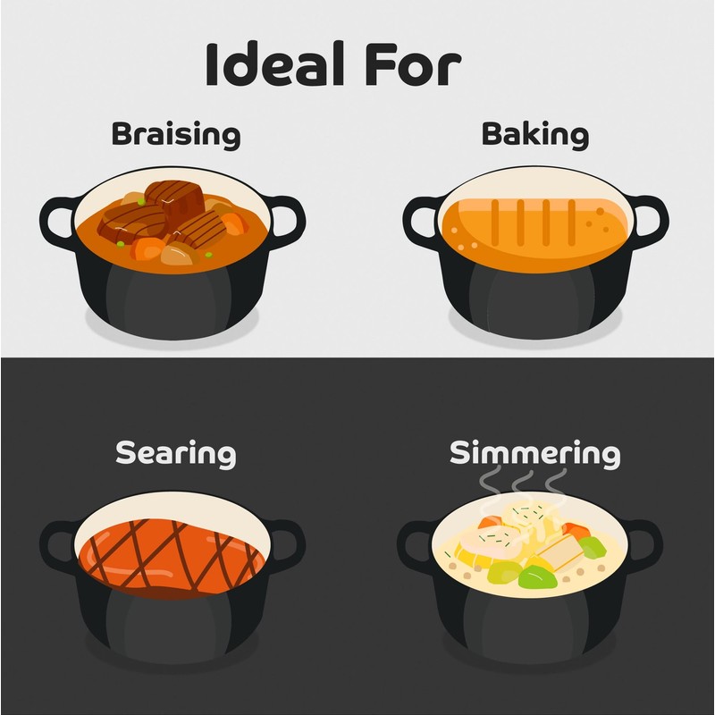 MULTIFUNCTIONAL. The sky is the limit when you cook using these cast enamel cookware. They are ideal for baking bread, frying chicken, boiling water for pasta, cooking soups, stews, sauces, and braising meat.