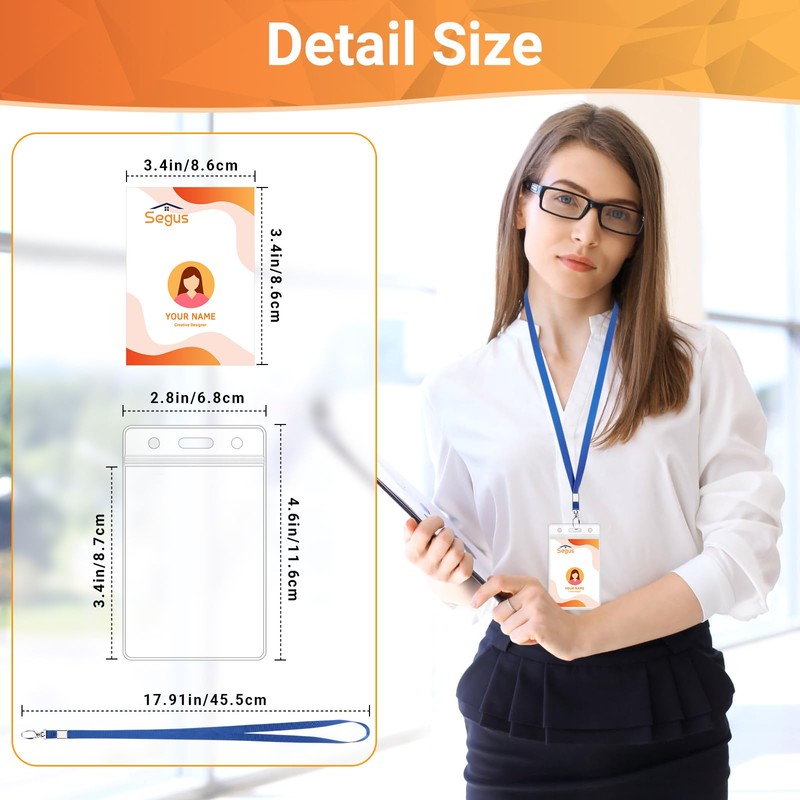 Segus Lanyard, Pack of 20 Card Holder with Strap, Card Holder ID, Waterproof ID Card Holder with Lanyard, Blue, for Office, School, Conferences (Vertical)