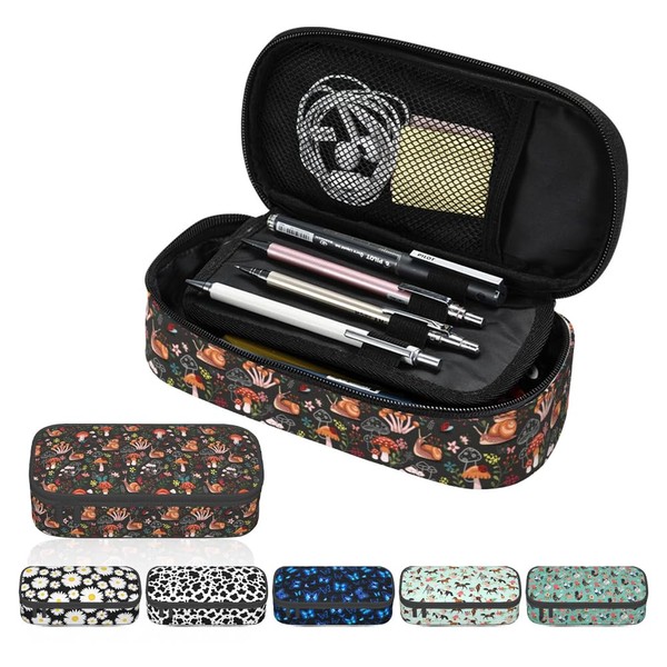 SEGXCFL Mushroom Pencil Case for Girls Boys Large Black Pencil Pouch Organizer Pencil Bags with Zipper for School Office College Back to School Gifts