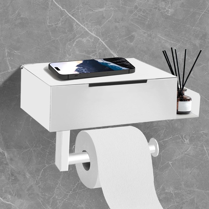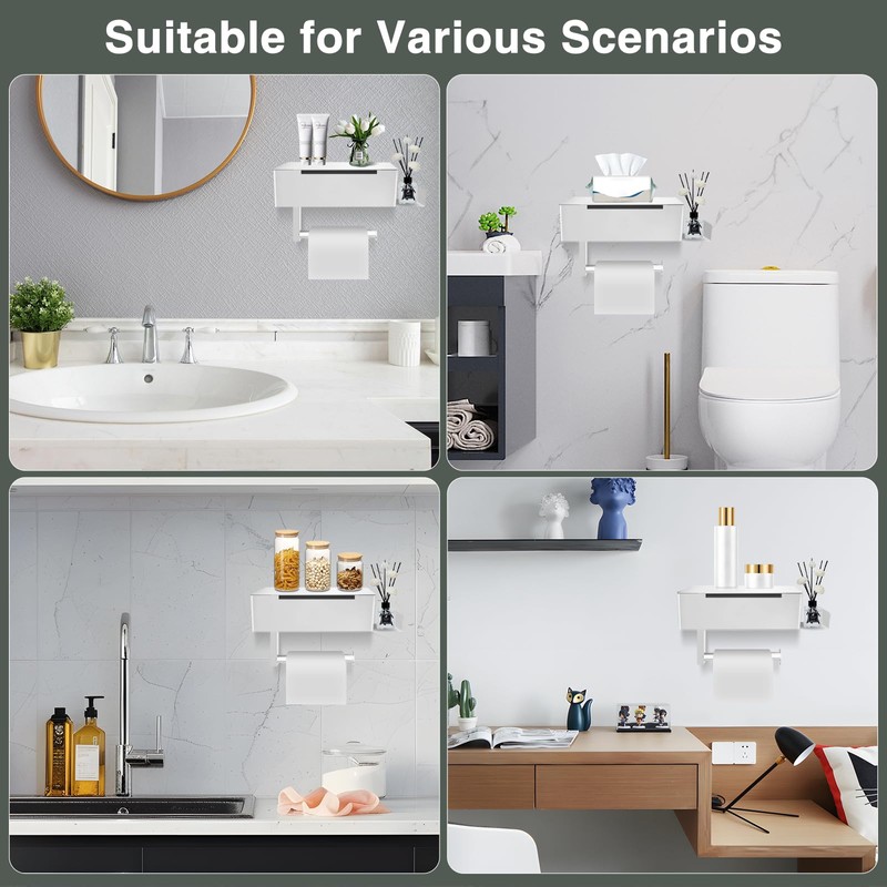 - 3-IN-1 DESIGN: Combines toilet paper holder, tissue box storage, and aroma diffuser in one space-efficient wall-mounted unit for modern bathrooms