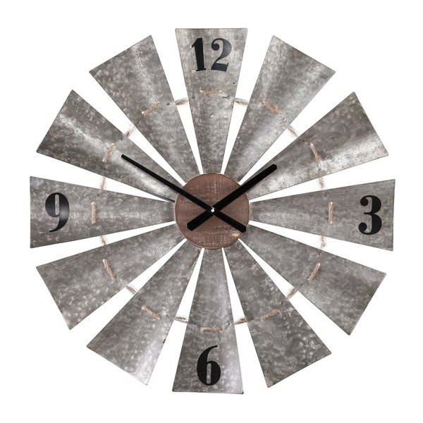 SEI Furniture Rustic Windmill Wall Clock - Large Oversized Clock - Galvanized Aluminum Metal