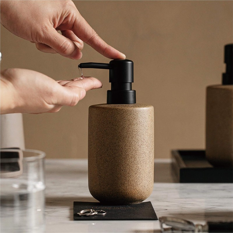 - 【Premium Stone-Like Design】Crafted from high-quality ceramic with a sophisticated beige finish that mimics natural stone texture. Each dispenser features a sleek black pump head, creating a perfect blend of modern aesthetics and natural beauty.