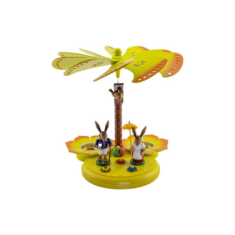Seiffener Volkskunst Jan Legler Pyramid from the Ore Mountains, Easter Decoration, Easter Pyramid, 24 x 23 x 24 cm, Pair of Rabbits