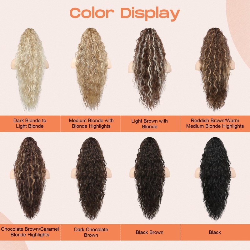 Hair Type: Long Wavy Curly Claw Clip Ponytail Extension