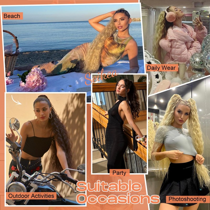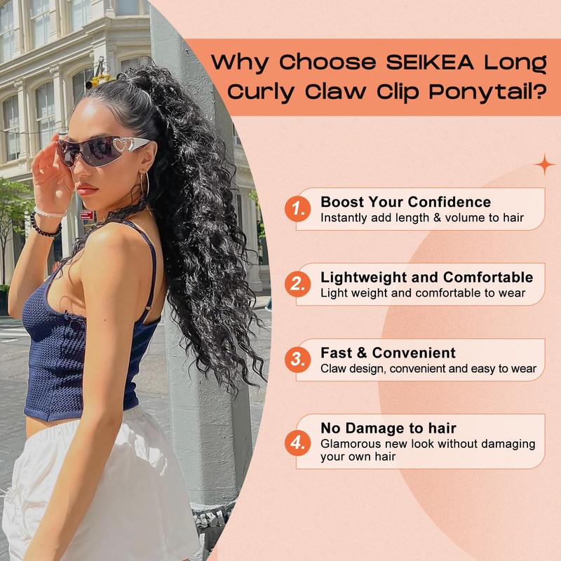 - Lightweight, Fluffy, Soft, Natural - Our SEIKEA 30 inch long wavy curly claw clip ponytail extension crafted from Premium Synthetic Fiber Hair, which makes the hair strands lightweight, soft, and also fluffy effect. Feels like, looks like, and wears like real human hair. Length: 30 inch/76cm, Weight: 185g/6.5oz;