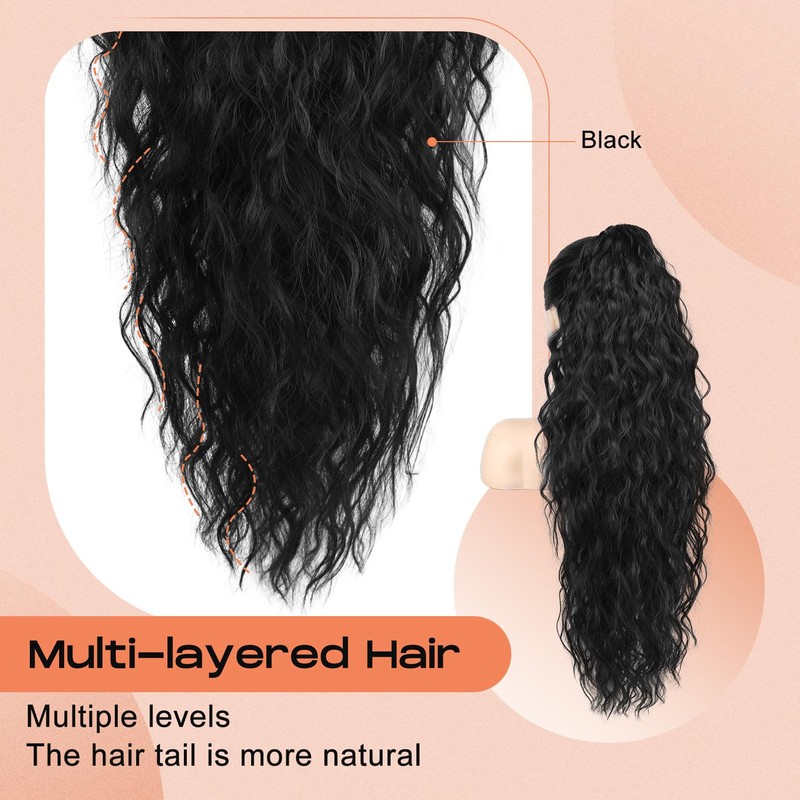 - Multi-Layered Hair Tail Design - The layered top and bottom of this curly ponytail extension create a natural, voluminous look with bouncy curls that blend seamlessly, and which makes the pony tails hair extensions more natural, wear it and you get a realistic and natural look