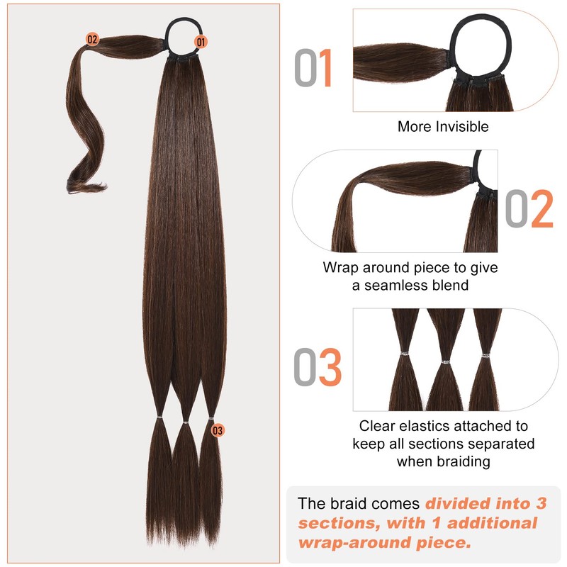 • Ready to Wear - This is a life changing hair hack for beginners! Boost your confidence with SEIKEA long braided wrap ponytail extension to switch up your hair color, style, length or texture without the commitment or harmful chemical & heat damage