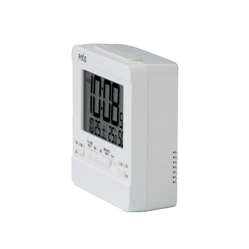 Seiko Clock NR538W Table Clock, Alarm Clock, Digital Temperature and Humidity Display, PYXIS Pixis, Product Size: 3.5 x 4.1 x 1.6 inches (9 x 10.5 x 4.2 cm)