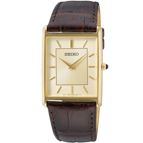 Seiko SWR064 Men's Wristwatch, Square Design, Quartz, Champagne Gold Dial x Brown Leather Band, Formal
