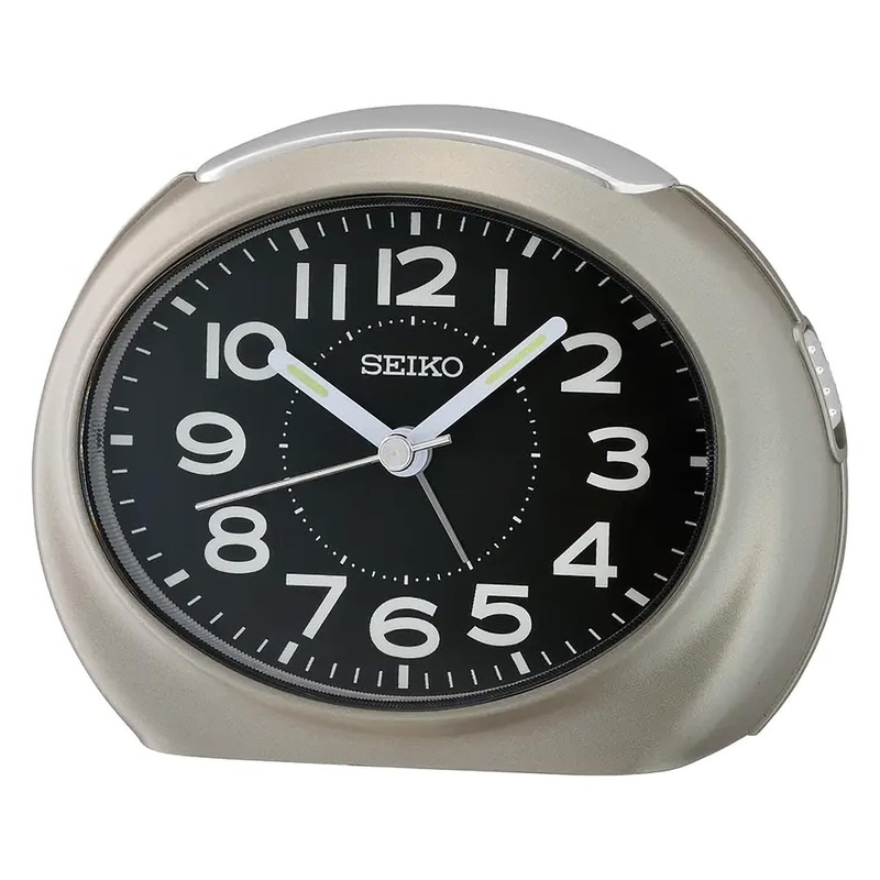 Seiko QHE193NLH Oval Non Ticking Bedroom Alarm Clock, Metallic Gray, 3.5 x 4.5 Inches