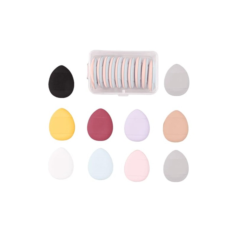 - PACKAGE CONTENTS: Set of 10 mini makeup powder puffs packaged in a convenient clear storage case for protection and organization