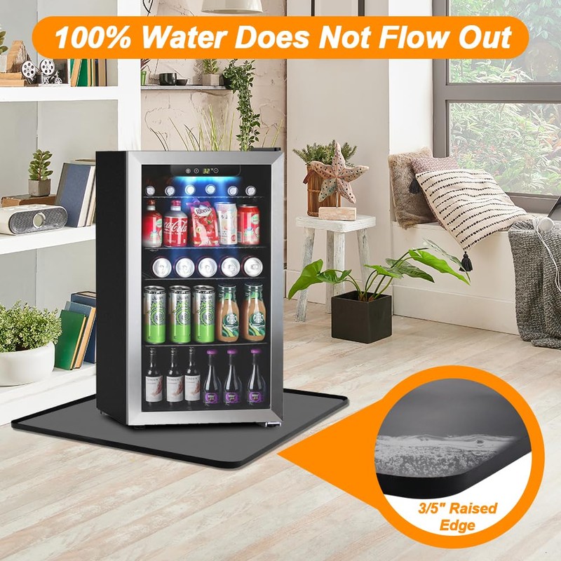 - 【100% Water Does Not Flow Out】 The mini fridge mat is built with 3/5" raised edge, like a tray and it can contain any liquid spills from the mini fridge. The premium material not only shields against scratches and dents but also keep your your floor tidy, clean.