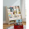 SEIRIONE Sturdy Kids Bookshelf, Tear-Proof Cotton Sling, Eco-Safe Toddler Bookshelf with 2 Cube Bins for Books & Toys, Beige/Wood Texture
