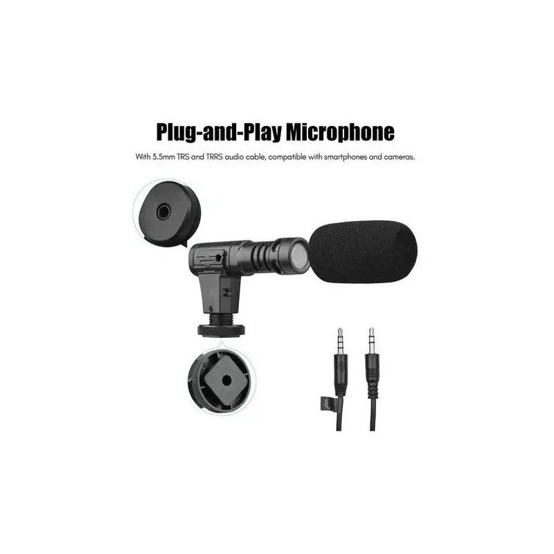 - También cuenta con un micrófono con cable de audio TRS y TRRS de 3,5 mm., compatible con teléfonos inteligentes y cámaras. Gracias a su espuma reduce el ruido de manera, captando un sonido más claro.