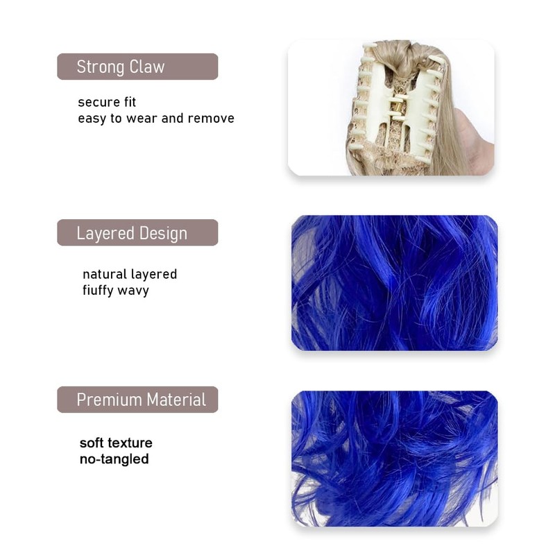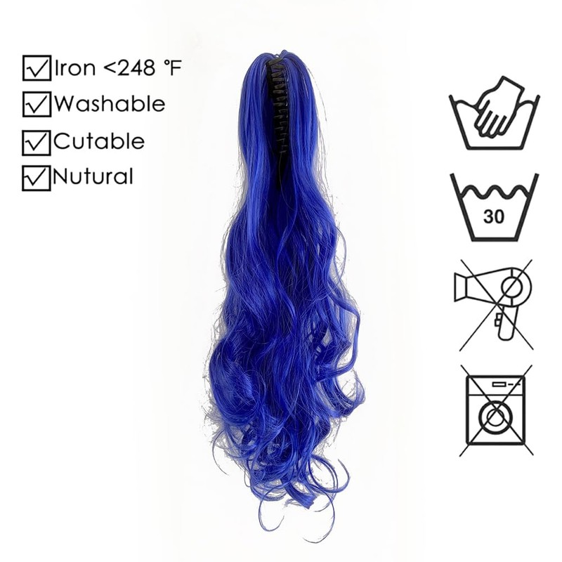 SEISAIDO 20IN Clip In/On Thick Drawstring Ponytail Multi-colored Hair Extension Curly Claw Cosplay Ponytail wig (Blue)