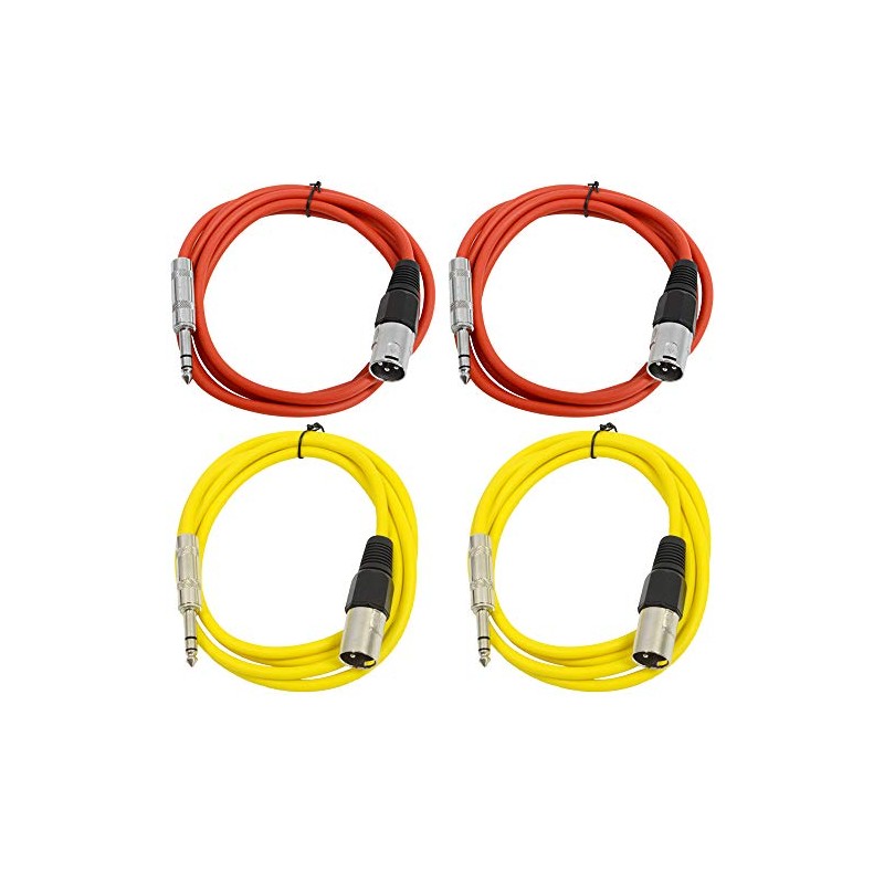 Seismic Audio - SATRXL-M6-4 Pack of 6 Foot 1/4 Inch TRS to XLR Male Patch Cables - Balanced - 6 Foot Patch Cord - Red and Yellow