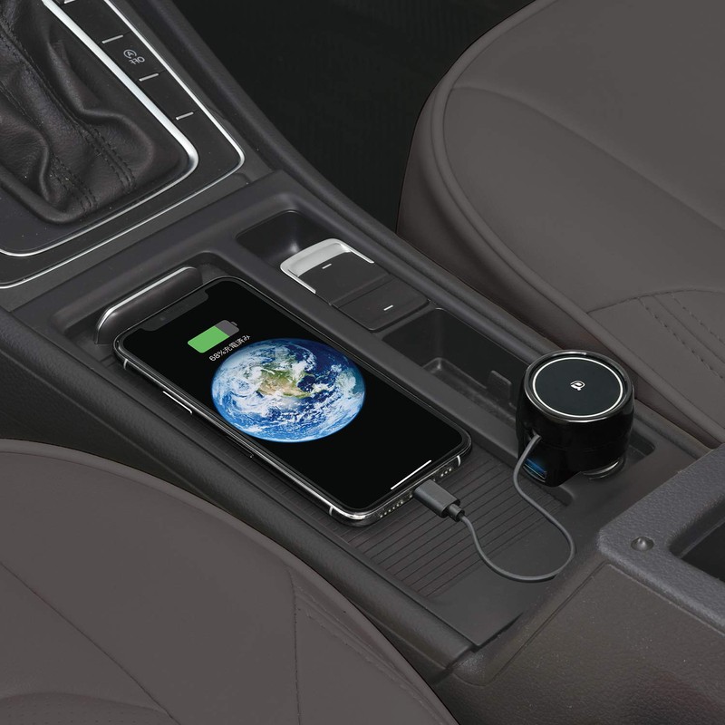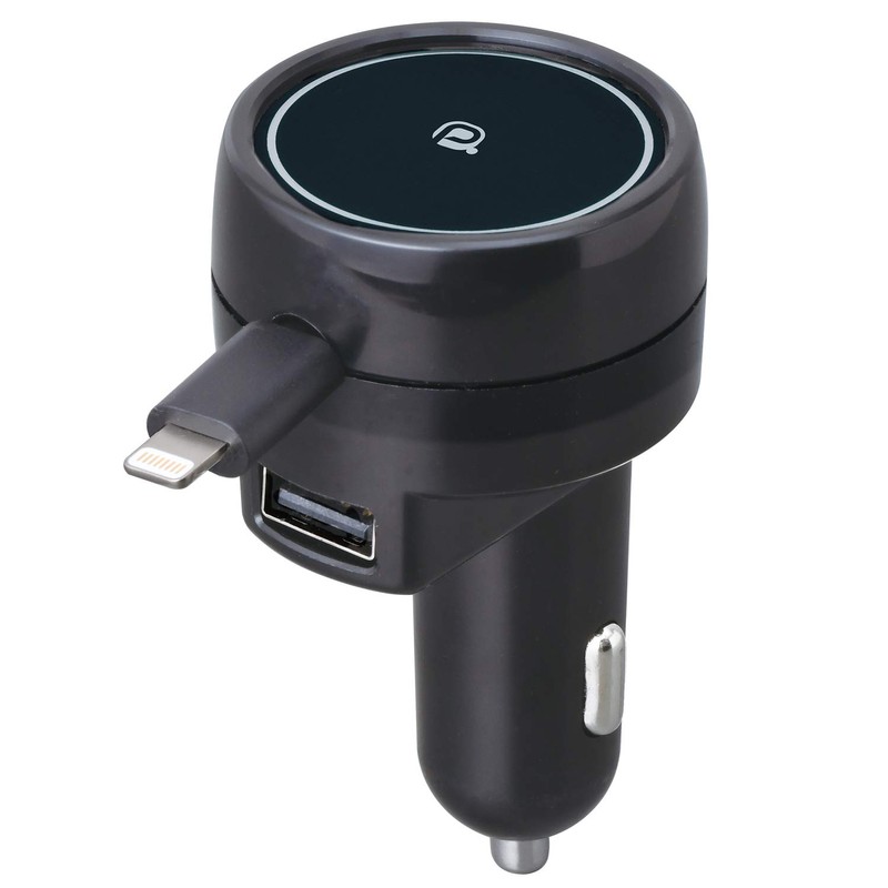 - (DC Reel Charger with Lightning Cable + USB Port) A small size DC reel charger with USB port for charging your iPhone or iPad