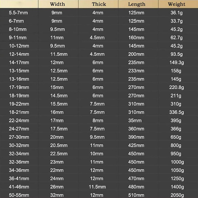 5.5mm x 7mm / 6mm x 7mm / 8mm x 10mm / 9mm x 11mm / 10mm x 12mm / 12mm x 14mm / 13mm x 15mm / 13mm x 16mm / 14mm x 17mm / 16mm x 18mm / 17mm x 19mm / 19mm x 22mm / 18mm x 21mm / 22mm x 24mm / 24mm x 27mm / 27mm x 30mm / 30mm x 32mm