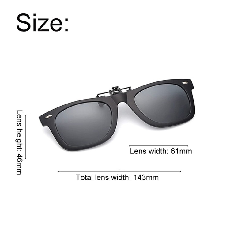 - 【Size】: To compare the style of clip-on frames to the sunglasses and choose the nearest in style so that the clip-on frames will cover the entire frame. Make sure they are slightly larger that ensures the eyes are completely protected from the sun.