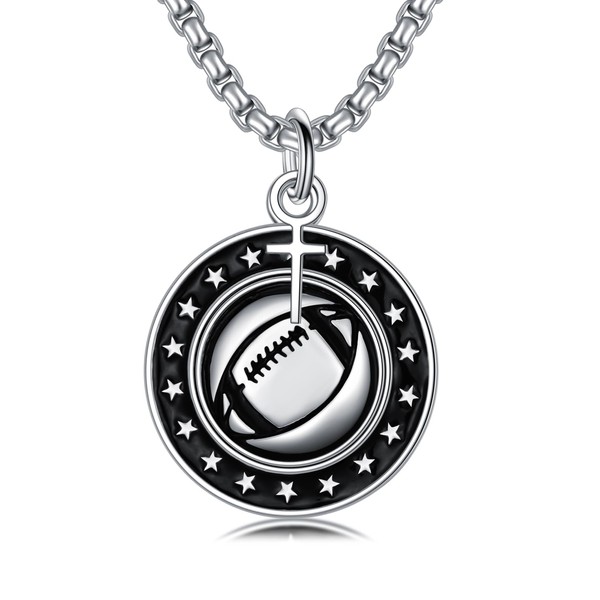 Seiyang Football Necklace 925 Sterling Silver Necklace with Football Cross Never Give Up Pendant Football Jewellery for Men and Women Football Players, Base