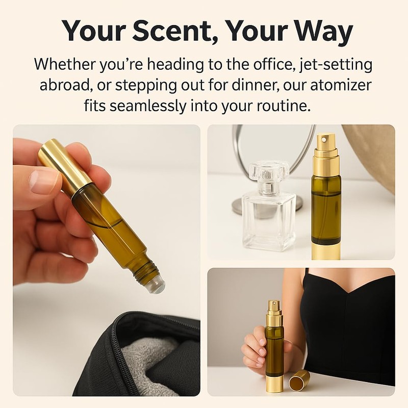 Seiyeje Travel Perfume Atomizer Refillable Bottle-10mlDual-Head Perfume Atomizer & Roller Bottle Leak-Proof Cologne Spray,Mini Perfume Spray Bottle(2 pack).