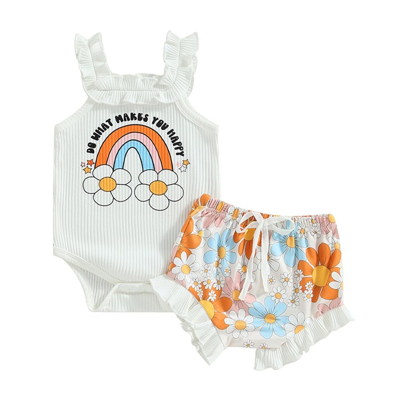 Sejardin Newborn Baby Girl Summer Clothes Letter Print Ruffle Sleeveless Ribbed Romper and Floral Shorts Infant Outfit (White Letter Floral, 9-12 Months)