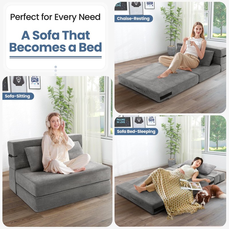 - Convertible Design & Multi-Functional Use: Effortlessly transform this folding sofa bed into four versatile shapes: sofa, bed, lounger, or storage space; Perfect as a sleeper sofa or kids' play mat or a sleeper chair for daytime relaxation.
