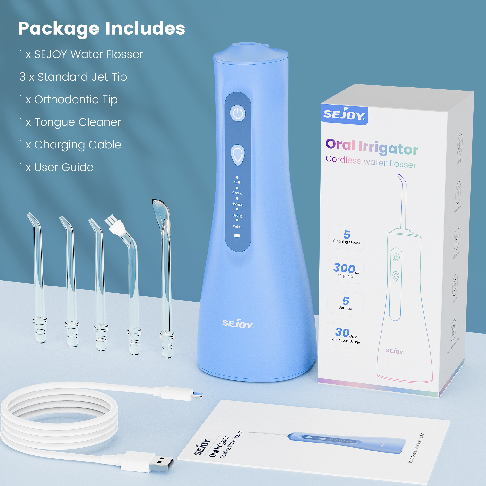SEJOY Cordless Water Flosser Dental Oral Irrigator Pick Teeth Cleaner with 5 Tips