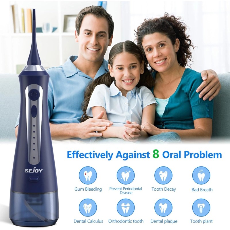 SEJOY Cordless Water Flosser Dental Oral Irrigator Pick Teeth Cleaner with 8 Jet Tips