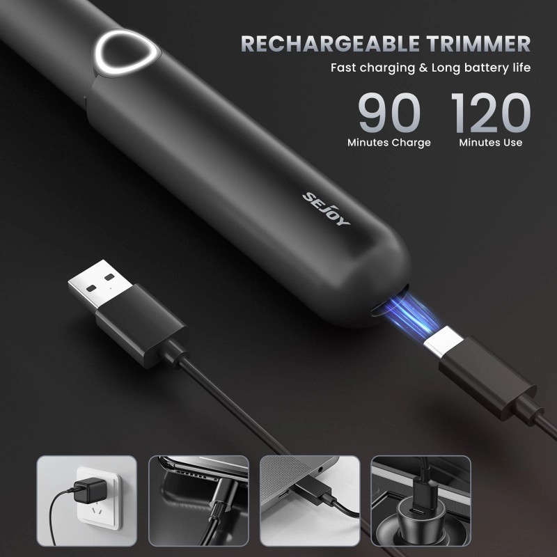SEJOY New Ear and Nose Hair Trimmer USB Rechargeable with LED Display Nose Trimmer