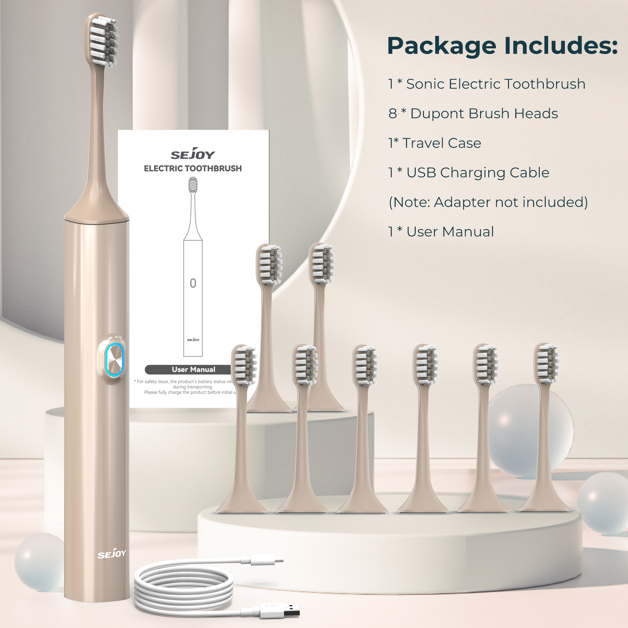 SEJOY Rechargeable Pro Sonic Electric Toothbrush w/ Travel Case & 8 Brush Heads