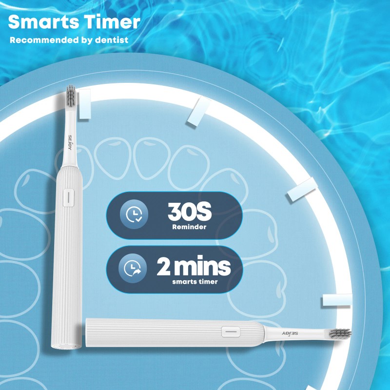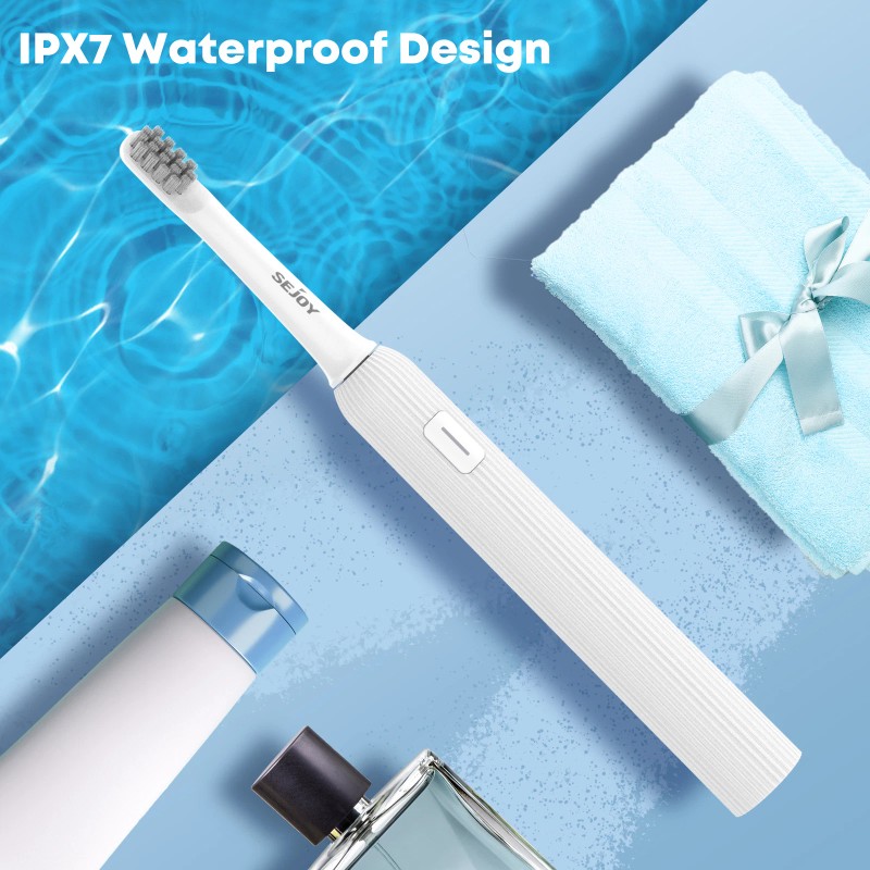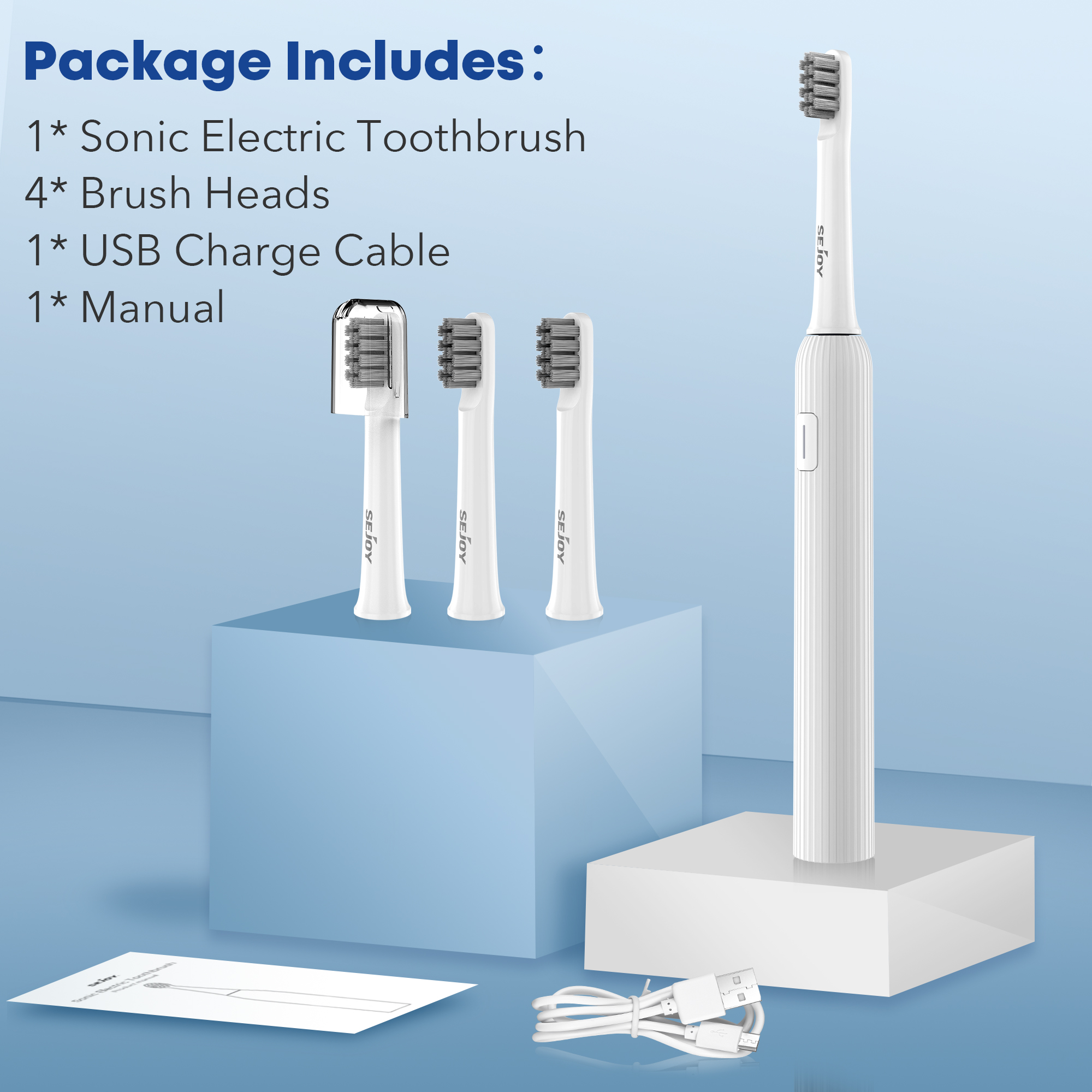 SEJOY Sonic Electric Toothbrush USB Rechargeable 4 Replacement Heads 3 Mode Toothbrush