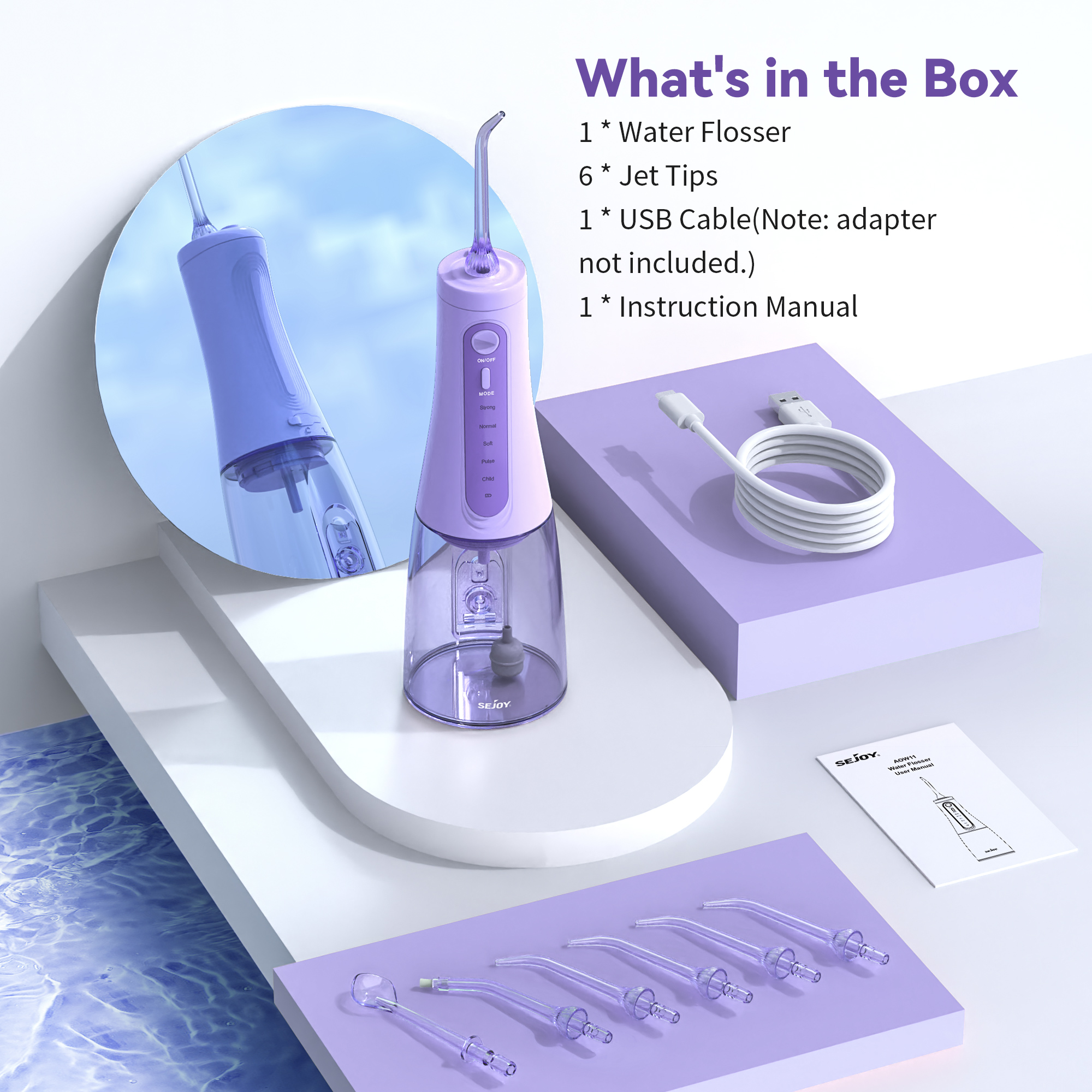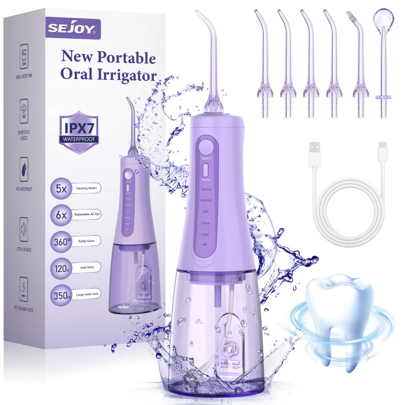 SEJOY Water Flosser Portable Dental Oral Irrigator Pick Teeth Cleaner w/ 6 Tips