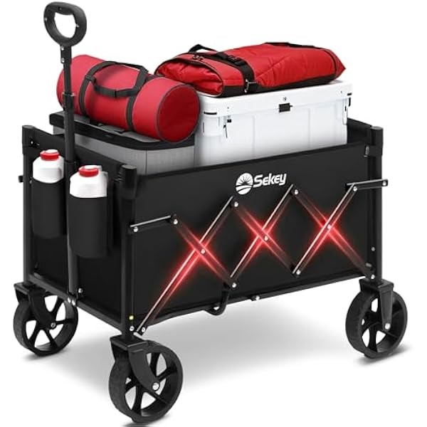 Sekey Heavy Duty Wagon with Big Wheels, Foldable Cart with 220LBS Capacity, Utility Lightweight Wagon, Collapsible Grocery Shopping Cart for Camping Sports & Holiday. Black