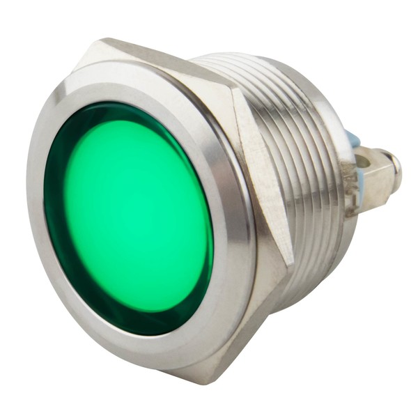 SeKi 22 mm LED Indicator Light in Green 6-24 V; V2A Stainless Steel Signal Light - Indicator Light, Indicator, Indicator Light, Power Indicator