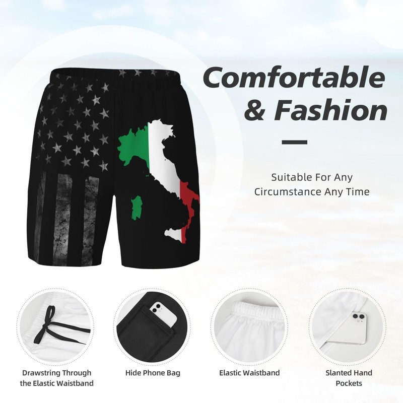 Sekibraunk American Italian Flag Mens Swim Trunks with Compression Liner 9 Inch Inseam Bathing Suit Quick Dry Swimming Trunks Swimsuit Beach Board Shorts with Pockets Drawstring, Medium