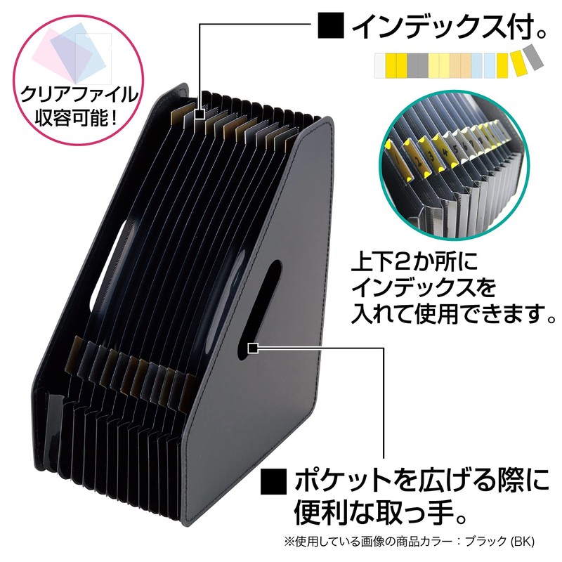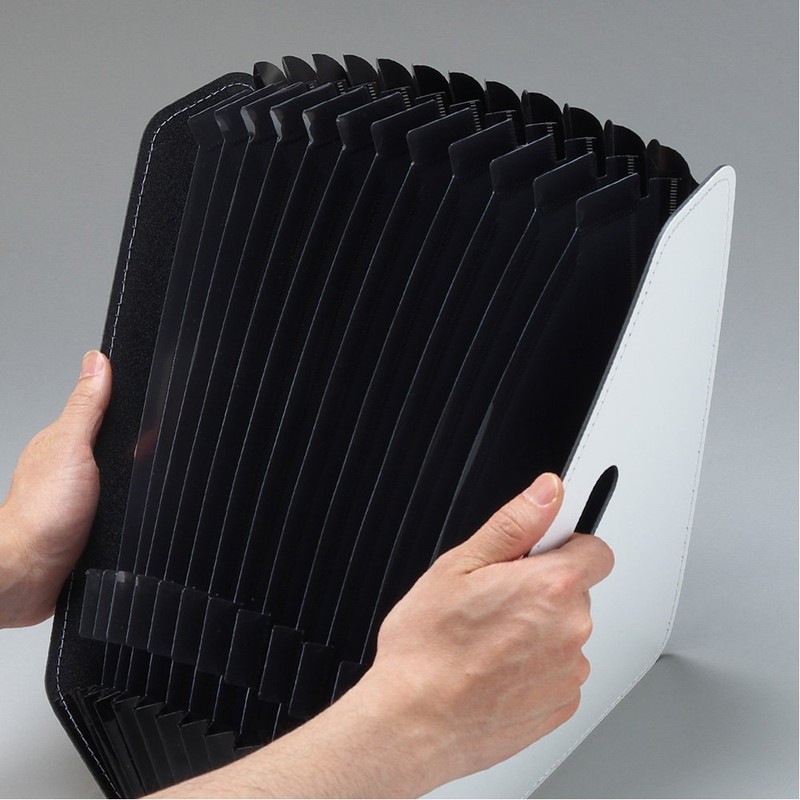 - Accordion type for convenient classification where pockets expand and contract depending on the volume of the documents