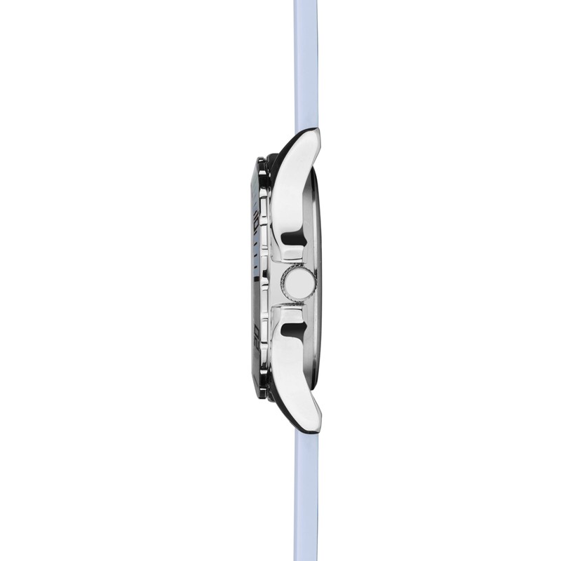 - QUALITY MATERIALS - This watch has a blue rubber strap with an ion-plated silver alloy case and a blue dial with a fixed, silver and blue bezel.