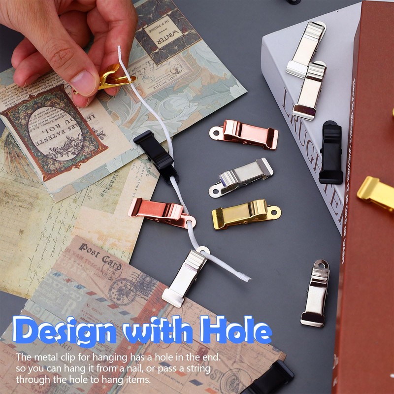 - 【Design with Hole】The metal clips for hanging have a hole at the end, so you can hang it on a nail or pass a string through the hole to hang items.