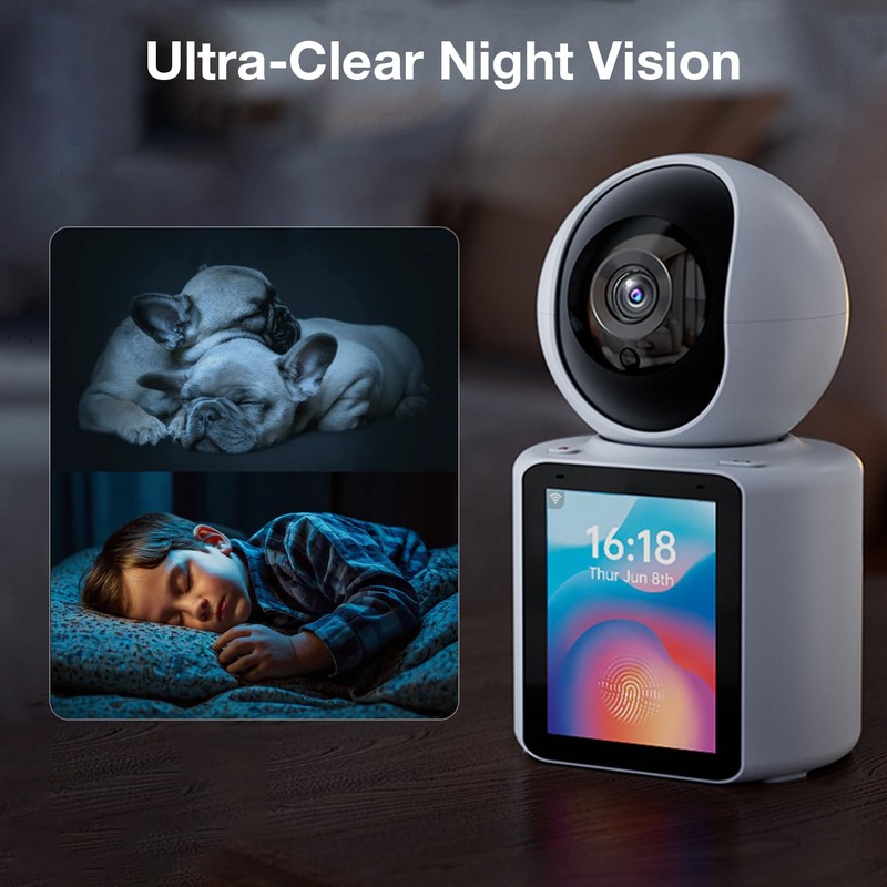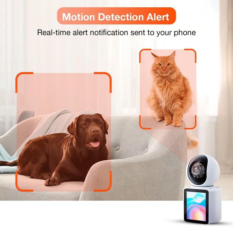 - [1080P Resolution & 360 Coverage]: 360 dog camera experience crystal clear, smooth live video with 1080P HD resolution and full 360 coverage. Keep an eye on your home from any angle with this indoor monitor camera with display screen & speaker.
