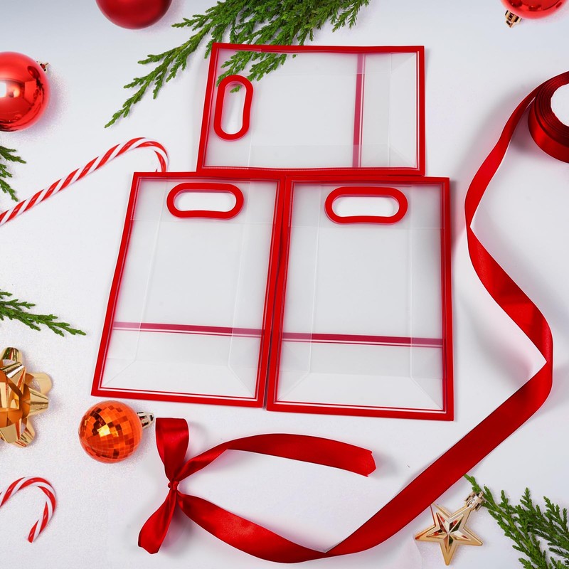 - Elegant Design: our plastic gift bags are completely transparent, making it easier and more intuitive to showcase the beauty of your gift. Use the included ribbon to tie a beautiful bow to the handle of the gift bag, enhancing the gift experience and adding decorative effects